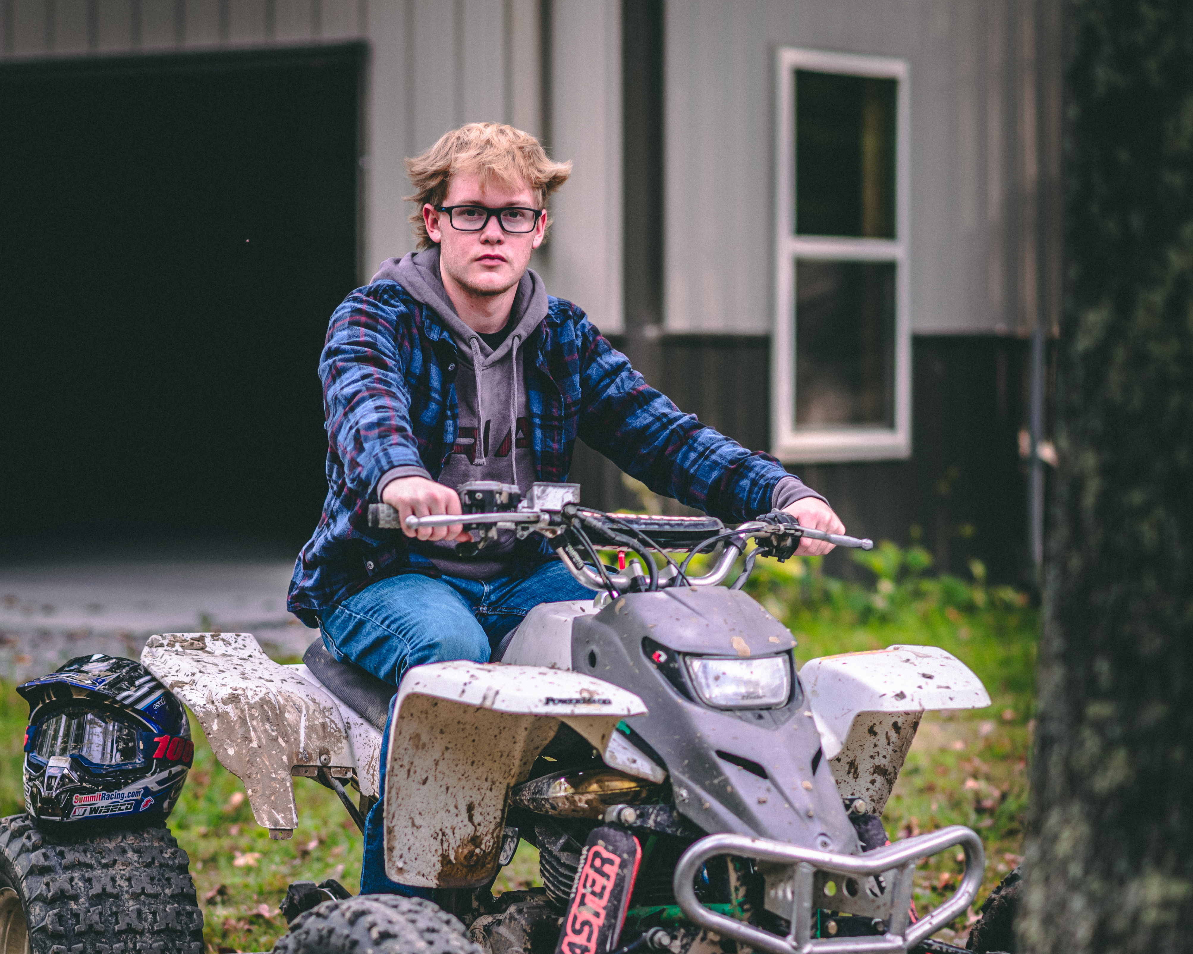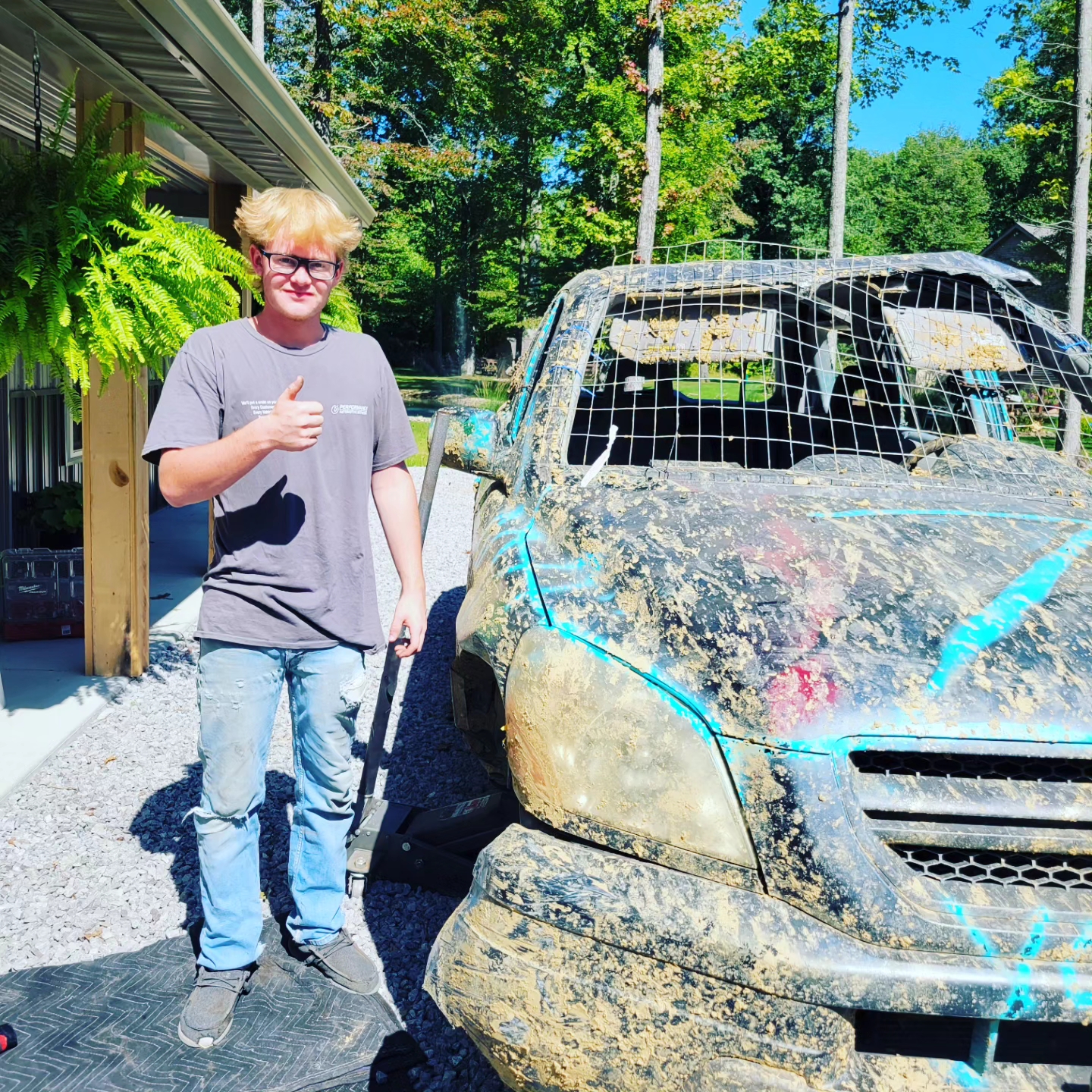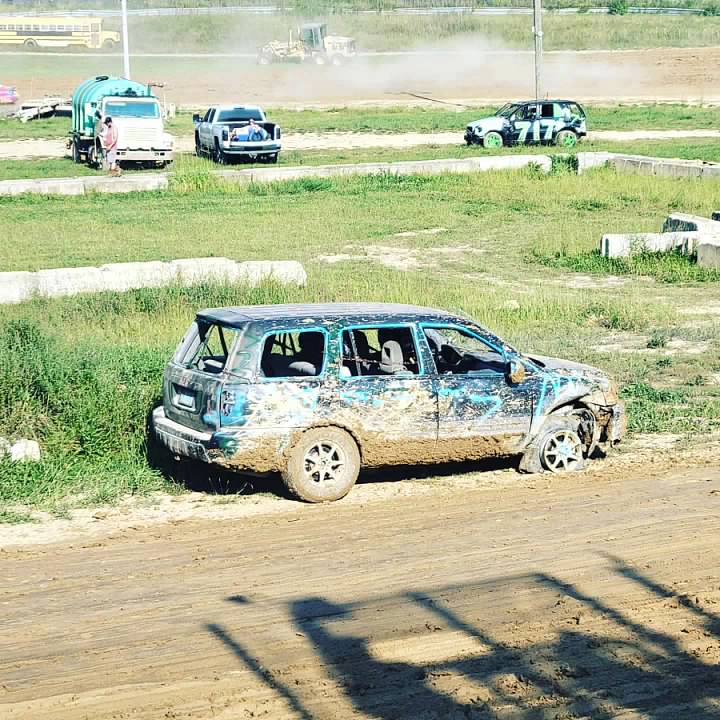 With Evan driving and multiple friends along with him, Evan raced on a dirt track with windows bashed out, helmets on, and smiles for days.