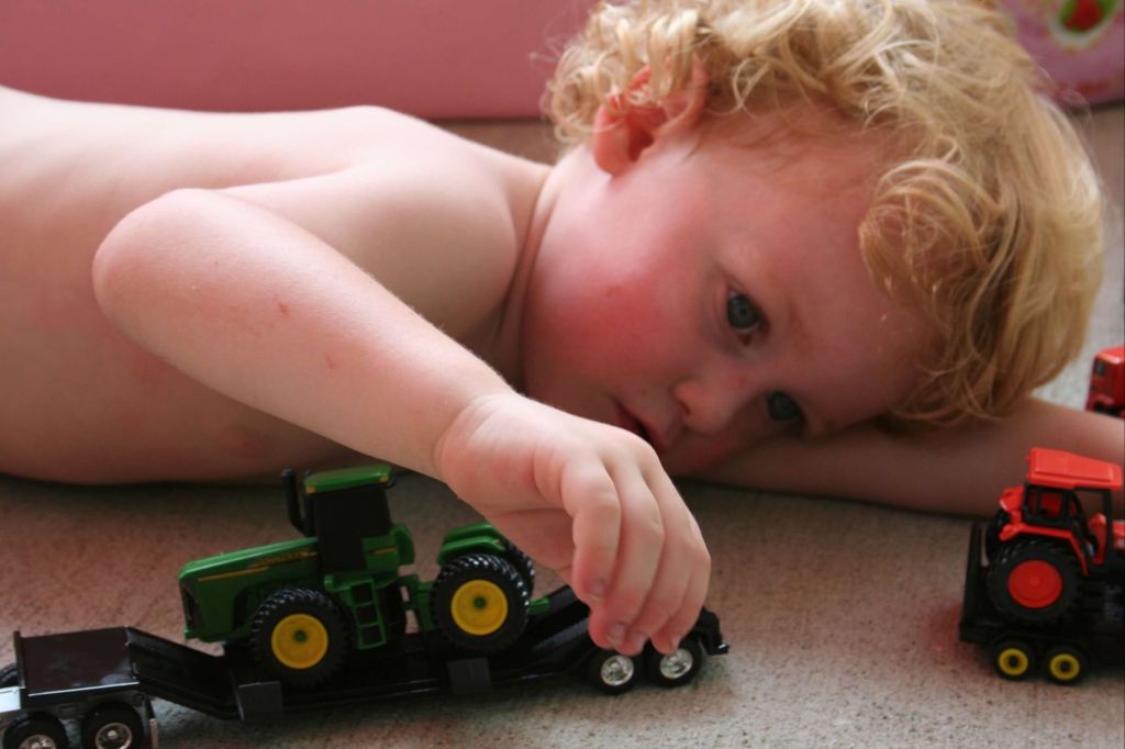 Evan loved anything that involved wheels, tools, or animals. He would lay on the ground for hours- slowly watching the wheels turn on his hotwheels, trucks, or toy tractors.